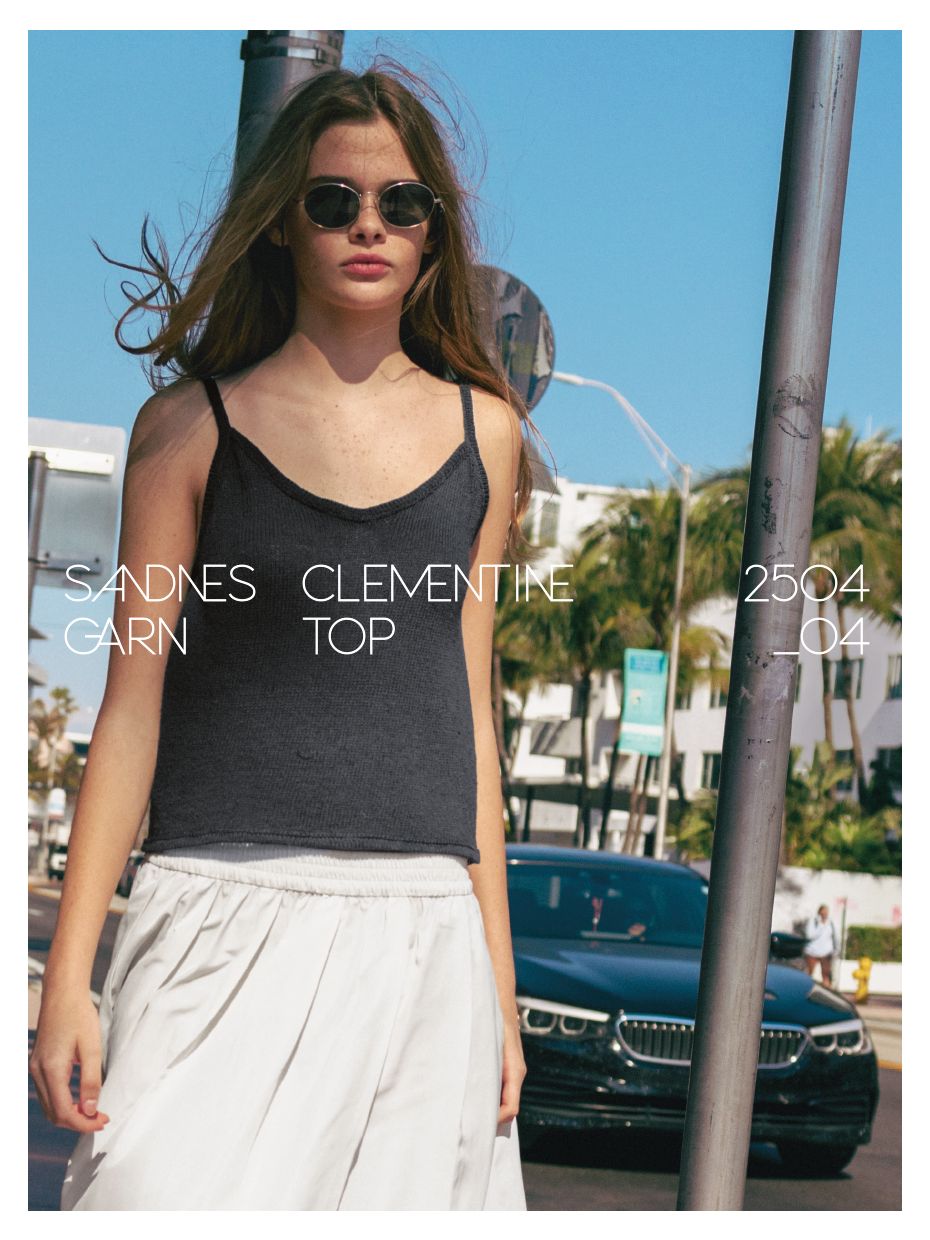 Toppen strikkes ovenfra og ned i TYNN LINE eller ALPAKKA SILKE. Først legges det opp masker til venstre forstykke, som strikkes frem og tilbake med økninger i hver side. Dette gjentas for høyre forstykke, før de strikkes sammen, og det strikkes frem og tilbake med økninger i hver side til under ermene. Deretter strikkes bakstykket på samme måte, for- og bakstykket strikkes sammen, og det strikkes rundt. Til slutt strikkes det kanter på for- og bakstykket, før ermekantene og stroppene strikkes og felles av med heklenål.